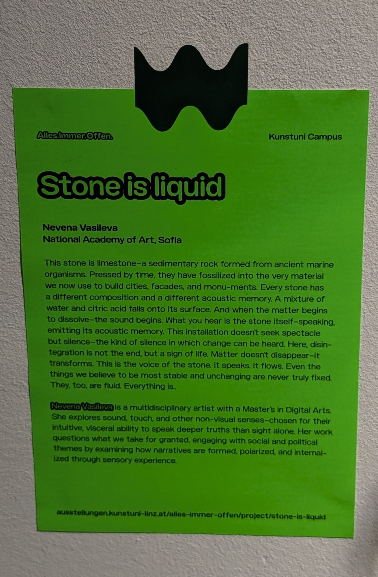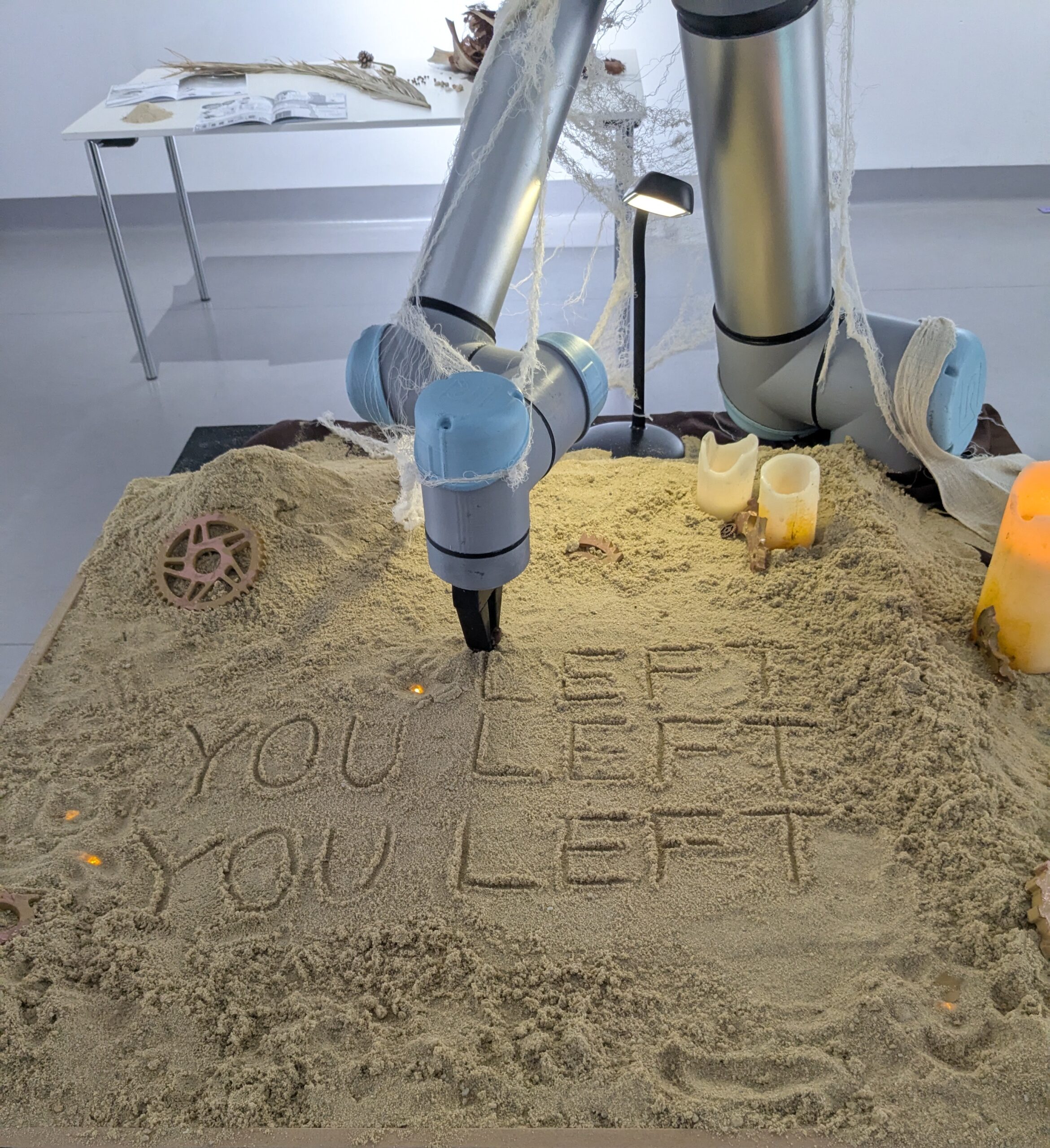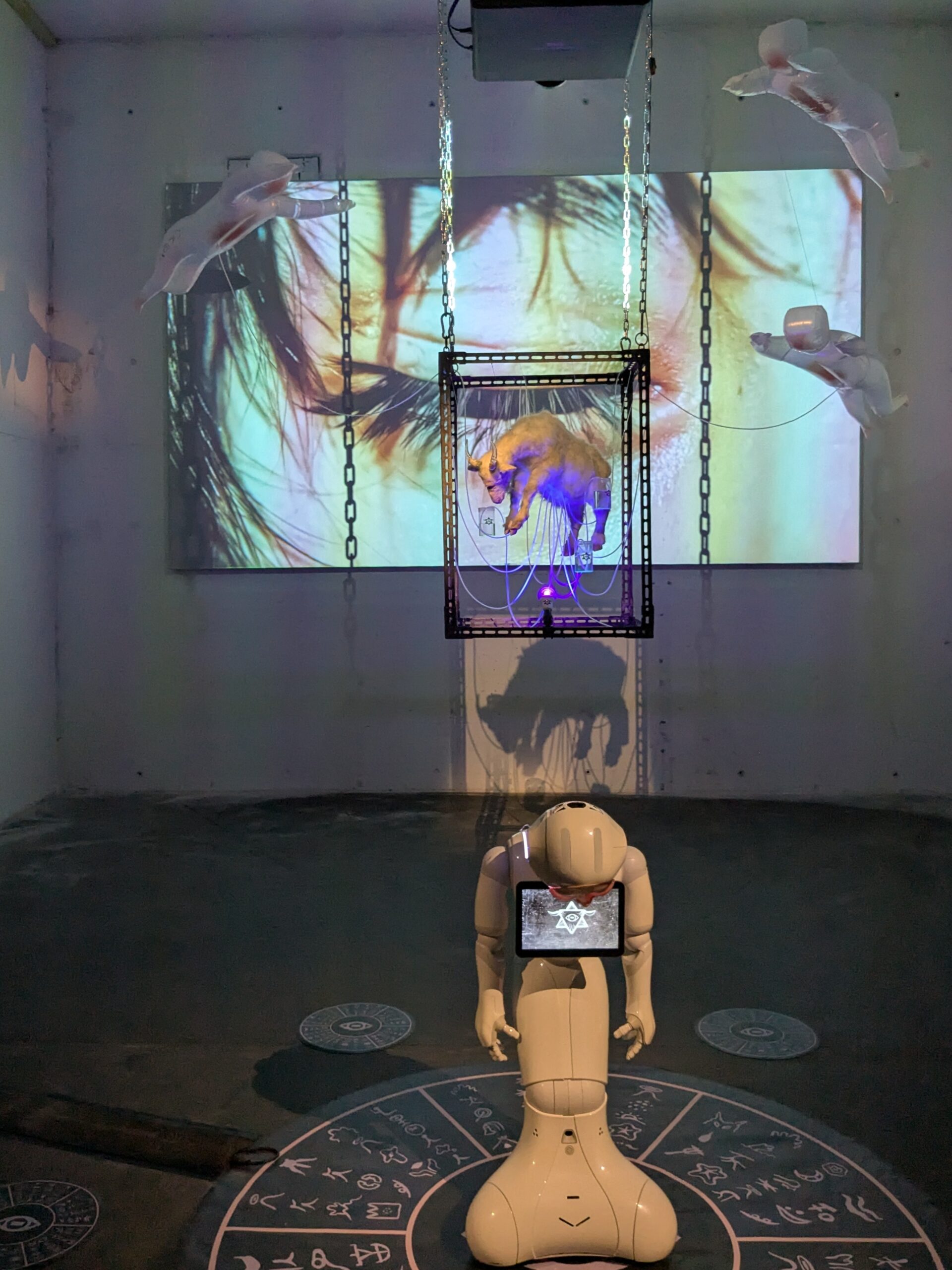 The installation Dynamics of Dog on a Leash shows a chained four-legged robot dog in a restricted state, about to attack. Viewers face its “murderous gaze” while staying safely beyond its reach. Though it has deadly power, it’s barely controlled by a “chain of ethics.” Will it seem like a “living other”? The dog thrashes, struggles, and collapses from overheating, mimicking a pitiful circus beast. People observe the specta cle as if watching a tragic performance. Social media reactions range from alarm to admiration. Some accuse the artist of harming humanity or abusing robots, while others praise the powerful show. The work highlights how robot motions still trigger our empathy, even though the machines Takayuki Todo (JP) Dynamics of a Dog on a Leash feel no pain. Their reactions are artificial, yet disturbingly lifelike. We are unable to cognitively discern the robot from a real animal. In an age of living with robots, will we grow more sensitive—or completely numb?